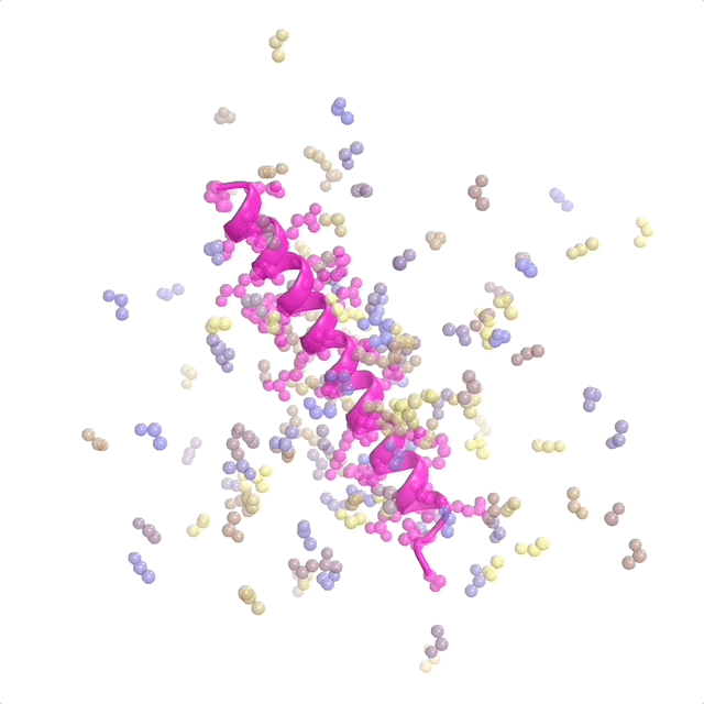 RFpeptides in action: Artist’s depiction of a colorful macrocycle being generated by RFpeptides.